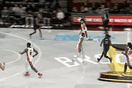 杰伦-布朗推进攻守转换,助攻米诺特空接扣篮得手